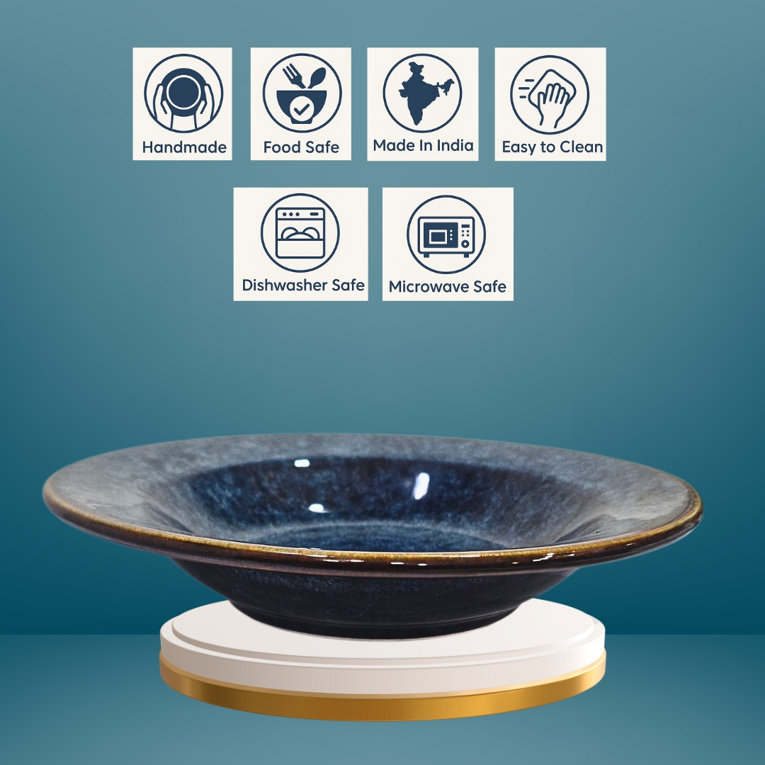 Introducing The ART of KLAY Large Pasta Plate, a 23 cm deep ceramic plate in elegant blue. Handmade from premium stoneware, it’s perfect for pasta, salads, soups, or snacks. Microwave and dishwasher safe, bone ash free, and durable, this versatile plate combines style, functionality, and timeless sophistication for everyday dining.
