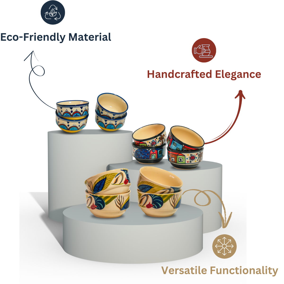 This handcrafted clay bowl set of four is perfect for serving soups, salads, snacks, and desserts. Made from natural clay, these bowls retain warmth and enhance flavors, adding a rustic charm to your table. Durable and eco-friendly, they blend tradition with modern dining beautifully.