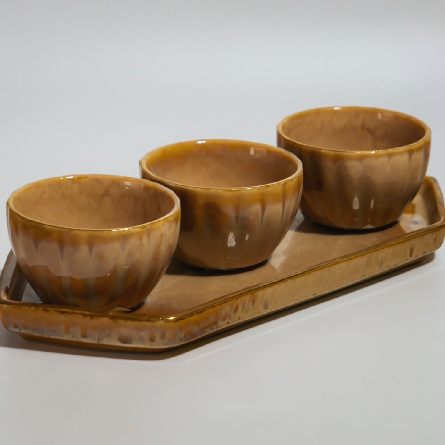 This elegant clay bowl set with a matching tray is perfect for serving snacks, dips, desserts, or condiments. Handcrafted for a natural, earthy appeal, it adds warmth and charm to any table setting. Durable and eco-friendly, it’s ideal for both everyday use and special occasions.
